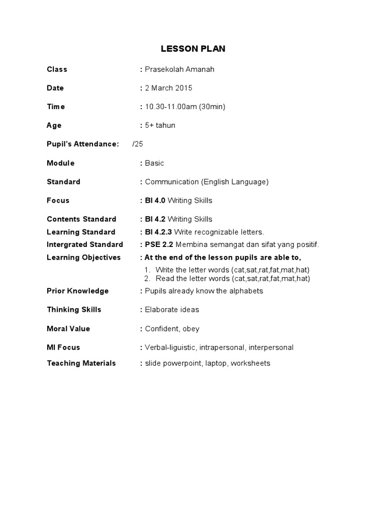 Macam mana teacher nak buat lesson plan itu berdasarkan temu bual latihan yang diterima oleh guru tadika lebih menjurus kepada kemahiran. Judul Lesson Plan. Well youve come to the right place.
